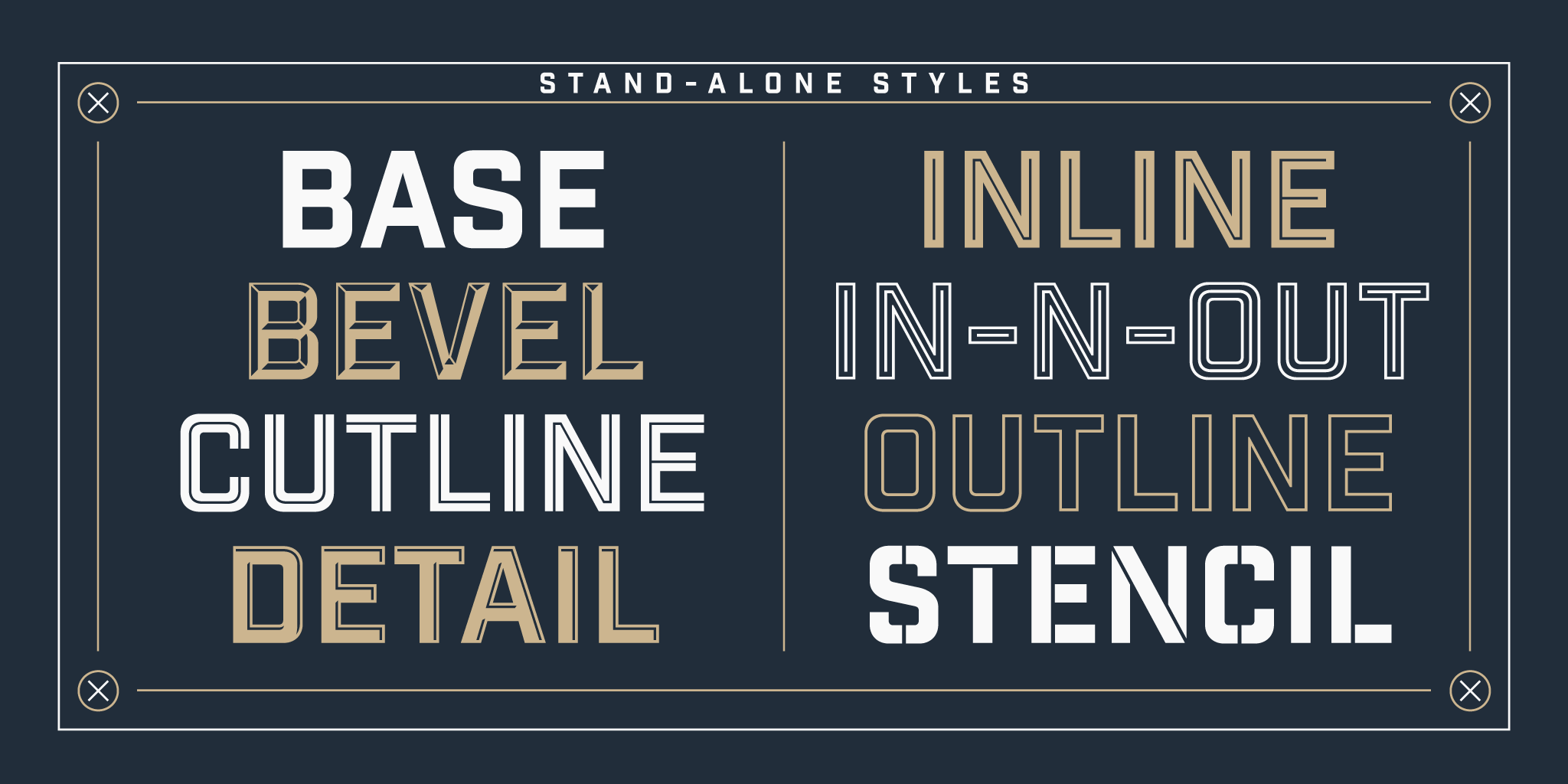 Industry Inc offers a wide-range of options that can be useful in various sports applications. The base font is very clean and bold, but there are also beveled, outline, inline, stencil and other options for maximum versatility.